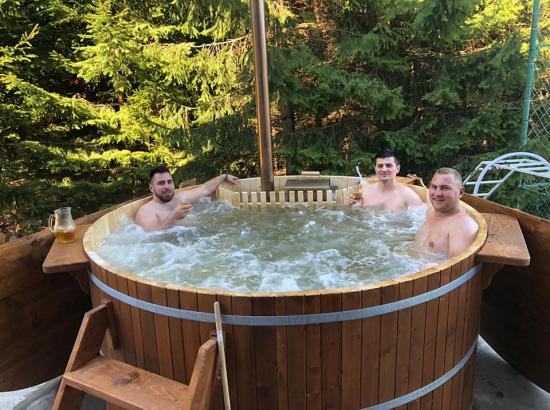Cabana Rustic mai are in componenta un teren de sport si o terasa pe care se afla un foisor, sezlonguri, balansor, spatiu pentru gratar si loc de joaca pentru copii.